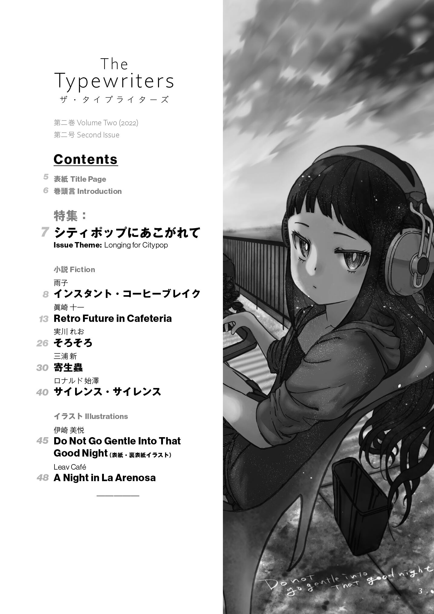 The Typewriters 第二号!! 今号は『シティポップにあこがれて』をテーマに、小説やイラストを、さらに充実したコラム、エッセイ、インタビュー、タイプライター特集も掲載してあります。